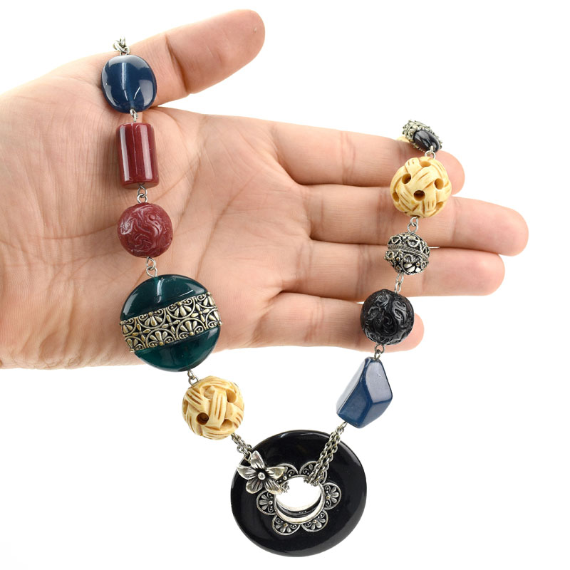 Two (2) Piece Chunky BoHo Style Necklace and Bracelet set. Unmarked. Good condition. Necklace measures 23" L. Shipping $28.00 (estimate $50-$100)
