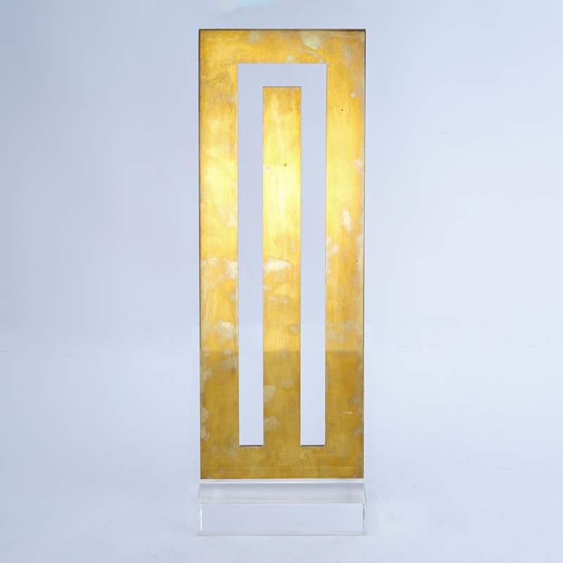 Stephen Edlich, American (1944-1989) Brass and Lucite Sculpture. Signed Edlich 40/75. Good condition. Measures 19-1/4" H x 6" W x 4" D. Shipping $95.00 (estimate $200-$300)