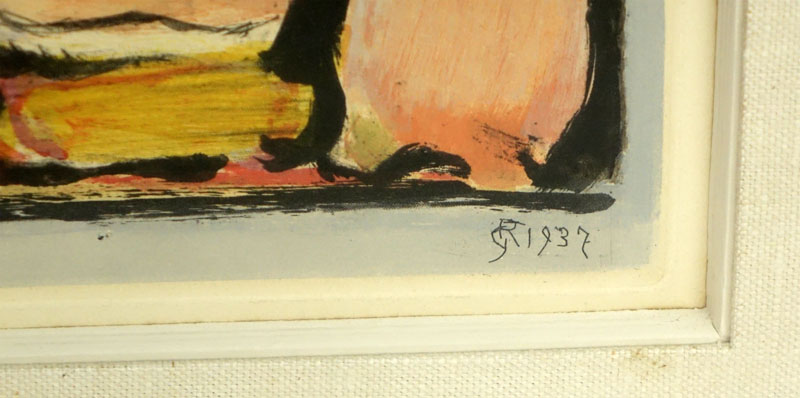 Georges Dominique Rouault, French (1904-2002) Color aquatint "Courtisane aux veux baisses". Initialed and dated 1937 in plate. Measures 12" x 8", frame measures 19-1/2" x 15-3/4". Shipping $95.00 (estimate $300-$500)