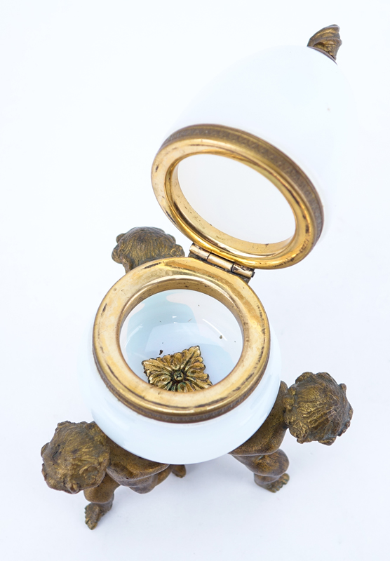 Antique French Gilt Bronze and Opaline Figural Hinged Box. Rubbing to gilt, hinge is slightly loose otherwise good condition. Measures 7-3/4" H. Shipping $45.00 (estimate $100-$150)