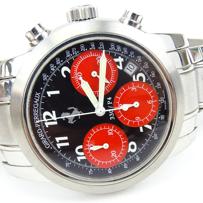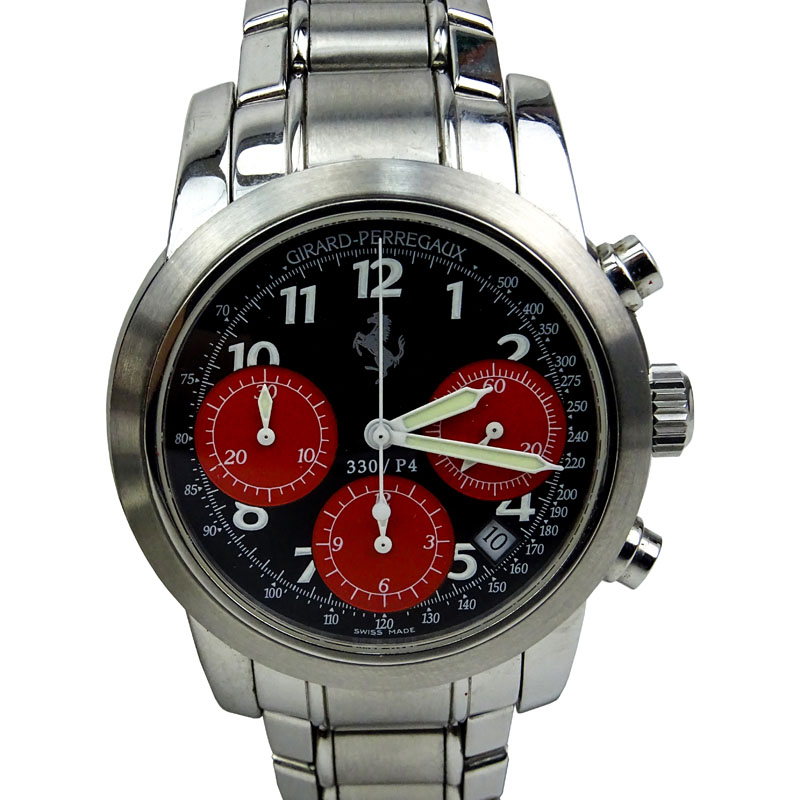 Girard-Perregaux pour Ferrari Stainless Steel Chronograph 330/P4 Ref. 8028 with Boxes and Papers Case measures 40mm. Minor surface wear to case back. Running. Please note the gallery does not warranty the running condition of watches. Shipping $44.00 (estimate $1500-$2000)