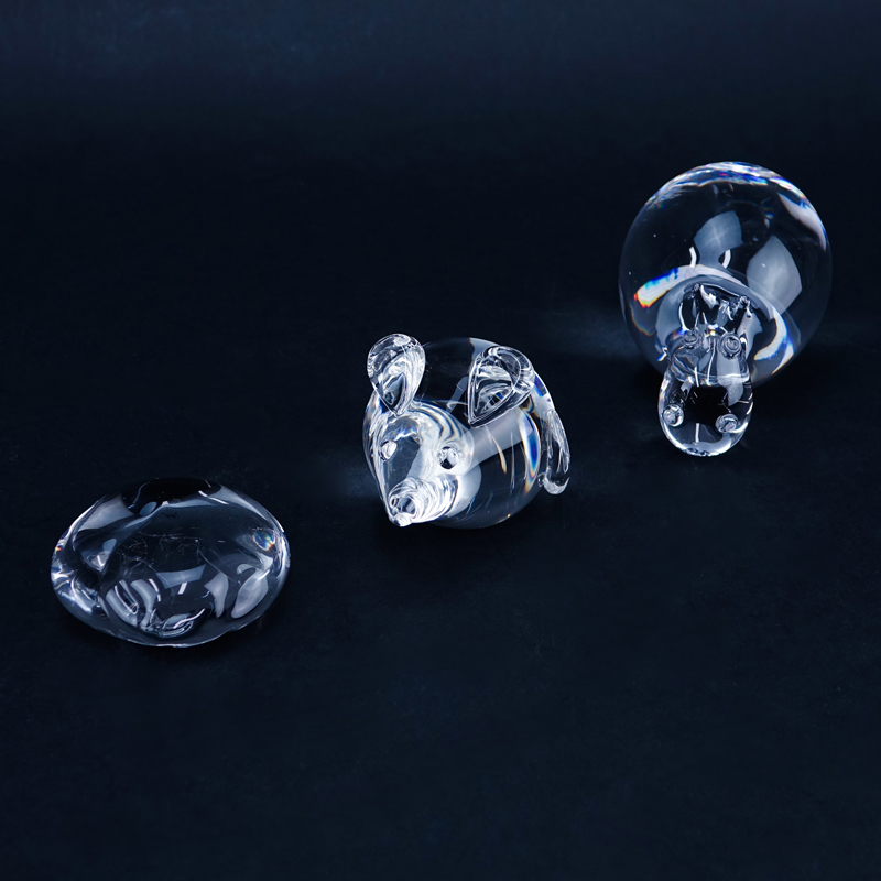 Lot of Three Crystal Animal Paperweights. Includes: Tiffany & Co. sleeping cat, Steuben mouse, hippo (signed illegible).