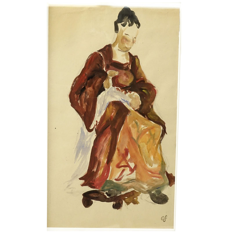 Carl Sprinchorn, American/Swedish (1887 - 1971) Pencil and watercolor on manila paper "Seated Woman" Initialed lower right.