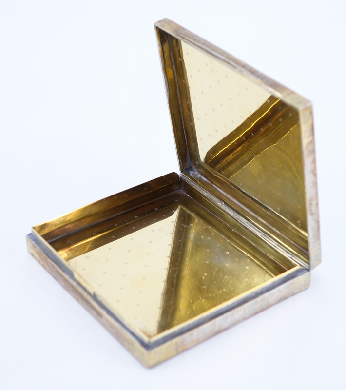 Vintage Mario Buccellati Gold Washed Sterling Silver Cigarette Box with Engraved Balli di Sfessania (Dance of Sfessania) after Jacques Callot to top. Signed M. Buccellati. Rubbing, overall very good condition. Measures 3/4" H, 4-1/8" W, 3-7/8" D. Approx. weight: 7.5 troy ounces. Shipping $32.00 (estimate $400-$600)