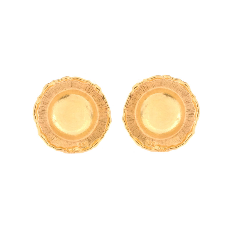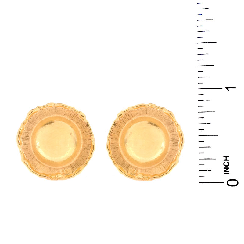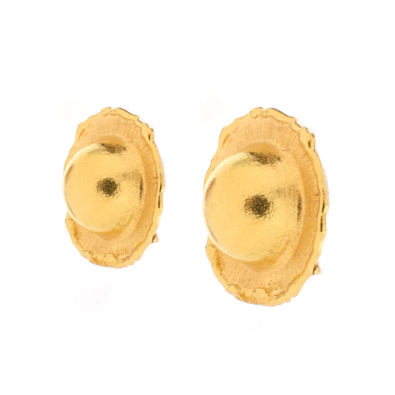 Jean Mahie, French (20th-21st cent.) 18 Karat Yellow Gold Earrings. Stamped 18K. Purchased at Neiman Marcus. Very good condition. Measure 7/8" diam. Pictured at page 44, Jean Mahie, Bronze and Gold. Approx. weight: 9.3 grams. Shipping 30.00 (estimate $600-$800)