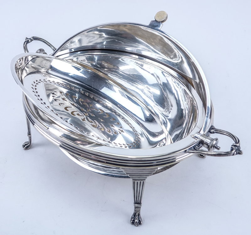 English Silver Plated Roll Top Dome Warmer. Marked. Wear. Measures 9" H. Shipping $65.00 (estimate $50-$100)