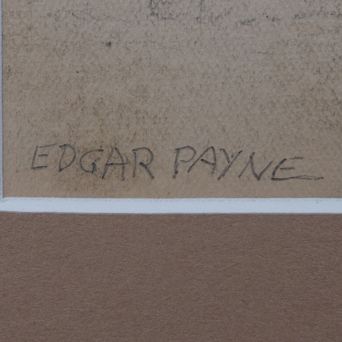 Edgar Alwin Payne, American (1883–1947) Pencil on Paper, Landscape. Signed lower left. Slight toning. Measures (sight) 3-3/4" H, 7" L; frame measures 8-5/8" H, 12-5/8" W. Shipping $48.00 (estimate $1000-$2000)