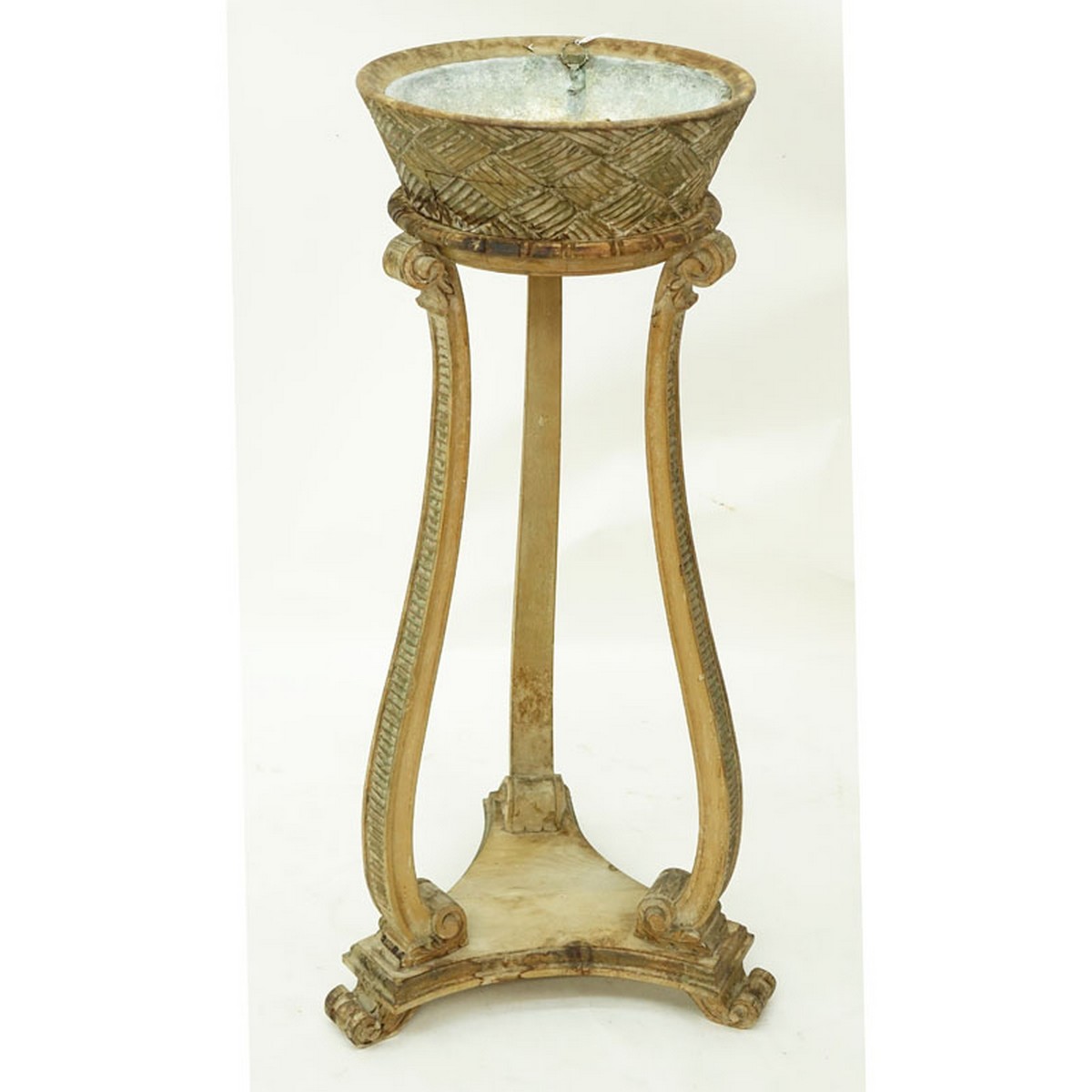 Neoclassical Style Painted and Carved Wood Planter. Includes insert to top. Normal seam splits, nicks and rubbing to surface. Measures 34-1/2" H x 17" W. Shipping: Third party. (estimate $50-$100)