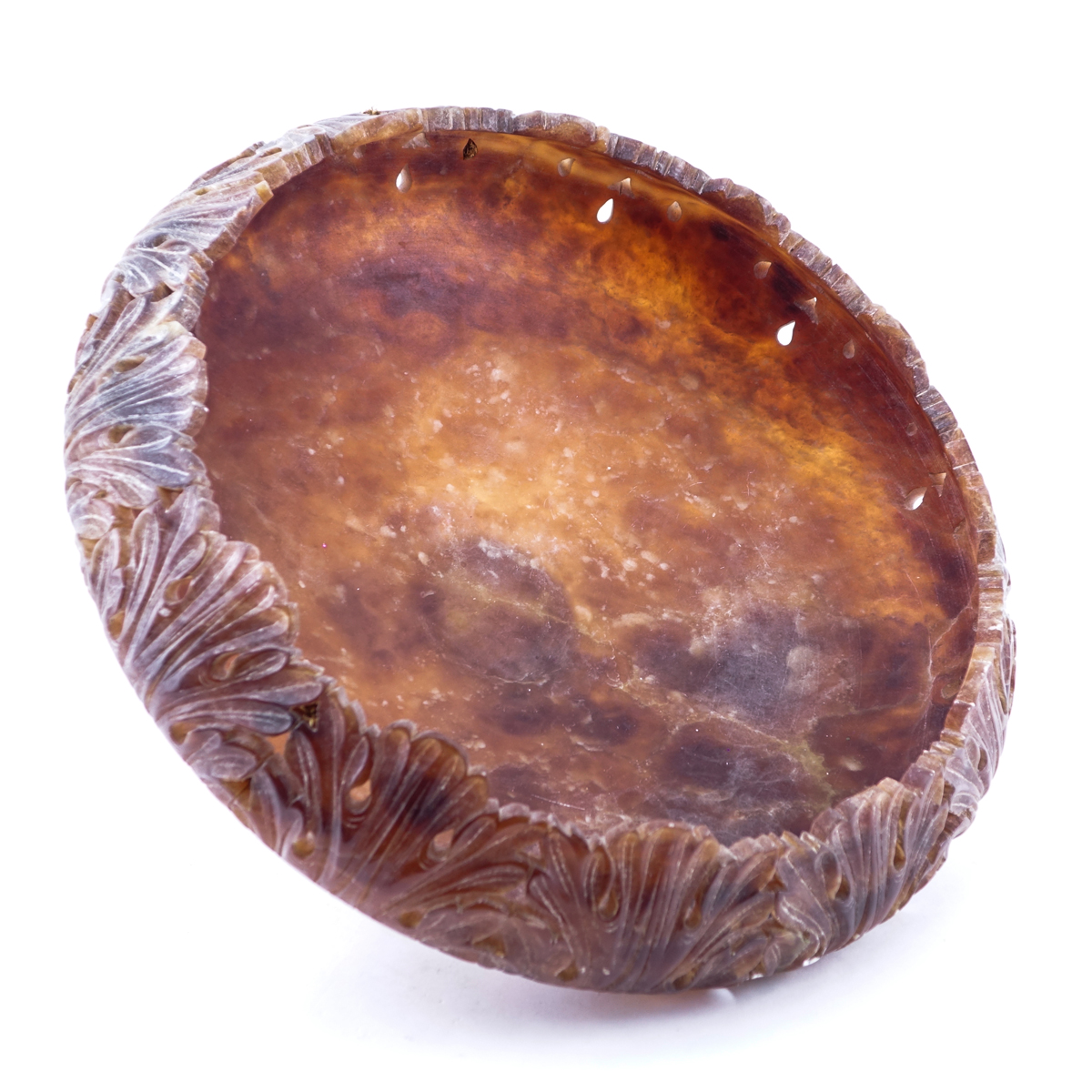 Large Carved Alabaster Footed Centerpiece Bowl. Good condition.