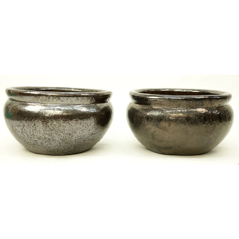 Pair of Large Glazed Pottery Jardinieres. Natural wear, rubbing.