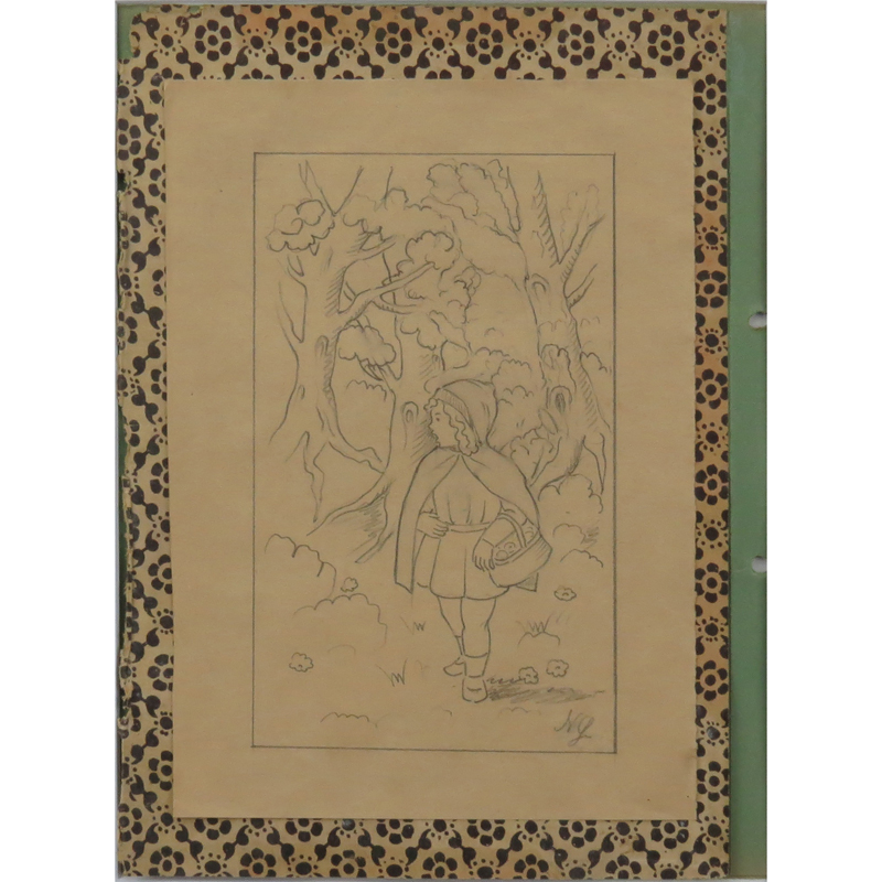 Attributed to: Natalia Sergeevna Goncharova, Russian (1881-1962) Pencil on tan paper sketch "Red Riding Hood". Initialed NG lower right.