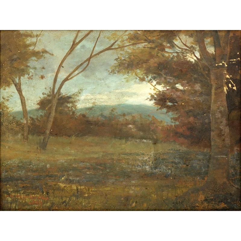 Abdon Pinto, Venezuelan (20th C) Paint on canvas "Site Of The City Of Caracas" Inscribed "A El Doctor Santiago Key Ayala" and signed A. Pinto. "as is" condition with losses, craquelure, soiling. Measures 18-1/4" x 23-1/2", frame measures 24" x 29-1/2" Shipping: Third party. (estimate $200-$400)