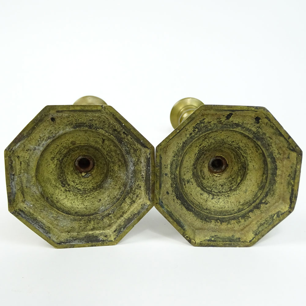 Pair of 19th Century Italian Heavy Brass Candlesticks. Unsigned.