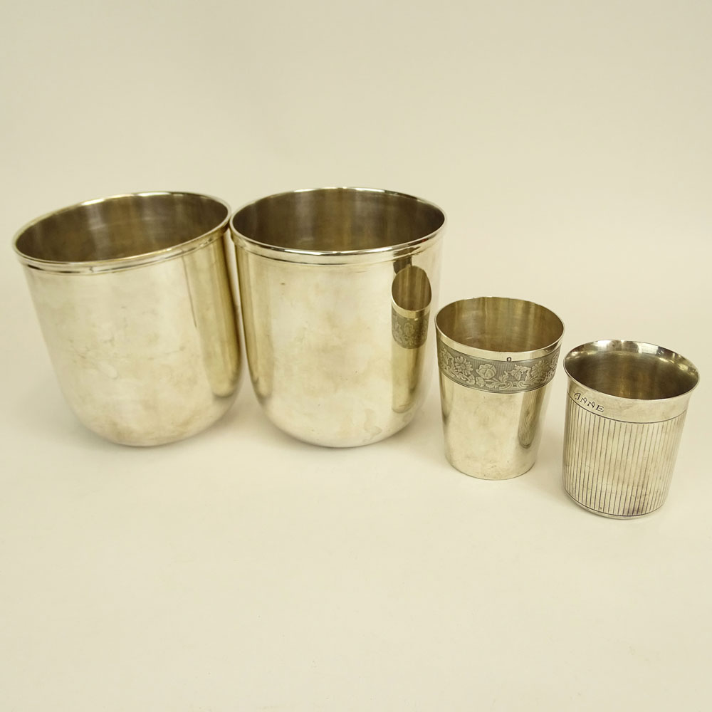 Lot of Four (4) Silver Plate Table Top Items. Includes two wine coolers 5-1/4", one Christofle tumbler 3", one Boulenger tumbler 3-1/2".