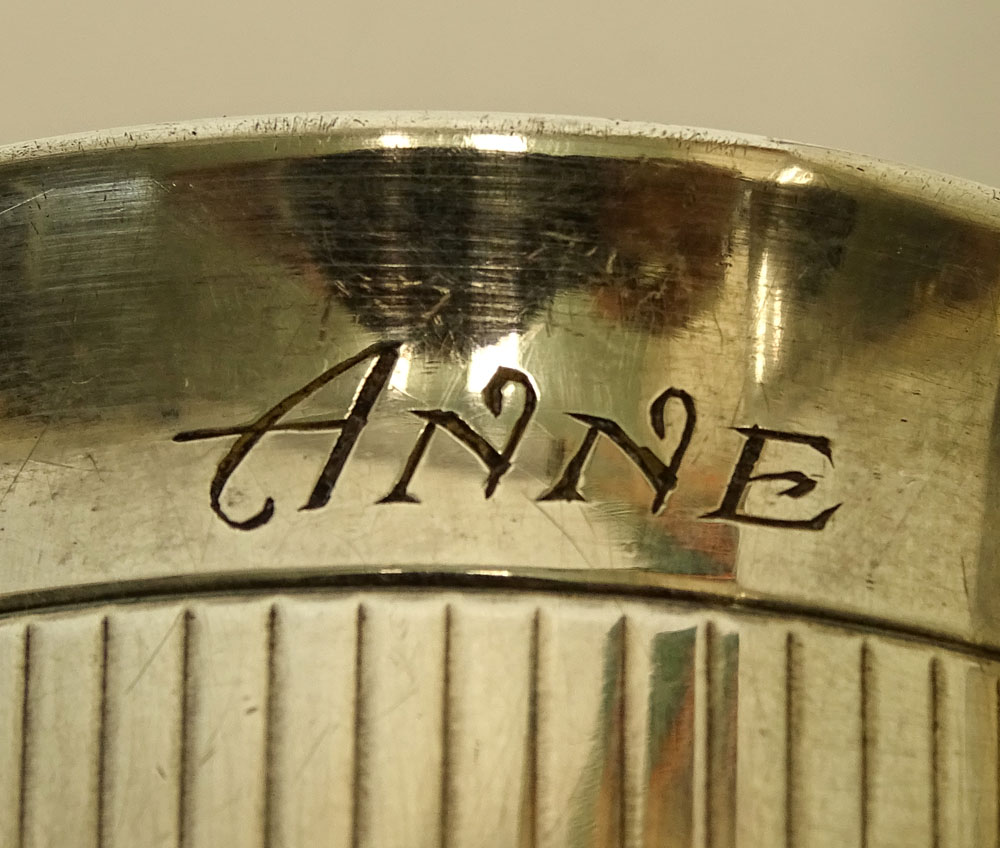Lot of Four (4) Silver Plate Table Top Items. Includes two wine coolers 5-1/4", one Christofle tumbler 3", one Boulenger tumbler 3-1/2". Boulenger with dent or in Good condition. Shipping $38.00 (estimate $25-$50)
