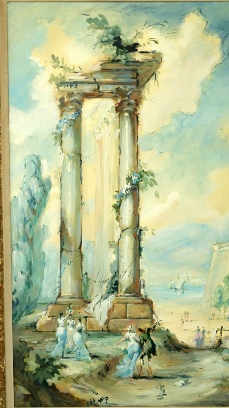 Roderic Montagu, French (1907 - 2001) Oil on Canvas, View of Ancient Ruins, Signed and Dated 1960 Lower Right. Good condition.