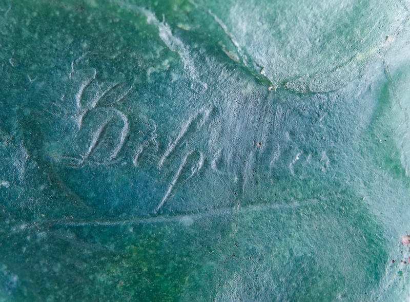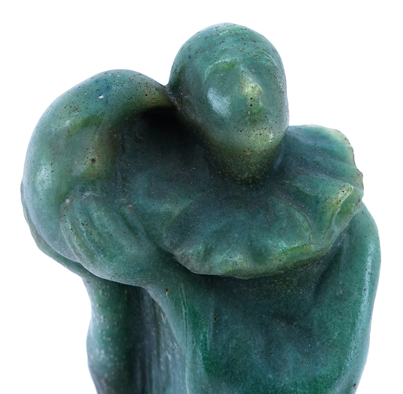 Amalric Walter, French (1870 - 1959) Walter of Nancy, Sculpture Pate De Verre "Harlequin Holding Moon" Sculpture. Signed and inscribed on obverse side.