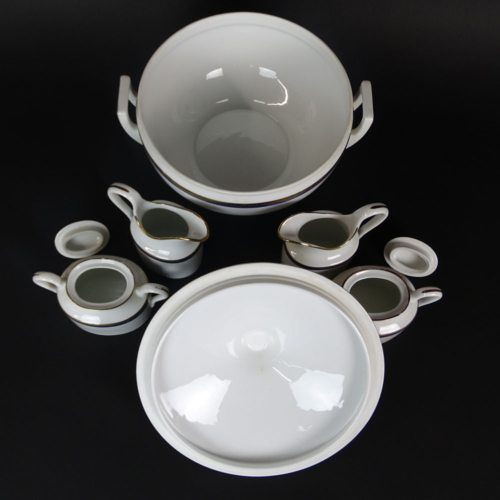 Five (5) Pieces Richard Ginori "Danube" Porcelain Serving Pieces. Includes a large covered tureen, 2 creamers, 2 lidded sugar bowls.