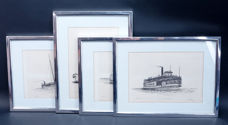 James Clary, American (20th C) Collection of four (4) Nautical Etchings. Includes: Glad Tidings 162/750, Detroit 179/750, Marine City 179/750, Steam Ship (name illegible)167/750.