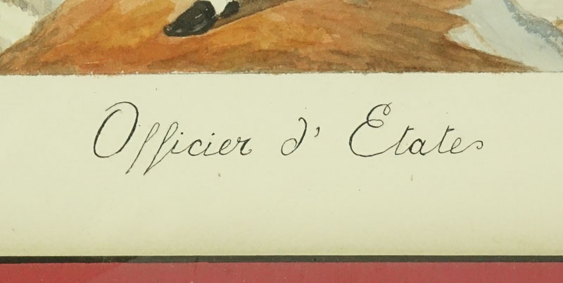 Collection of Eight (8) 19th Century French Military Gouache On Paper Paintings. Includes portraits of various officers: Etat Major, Garde Imperiale Lapeur, Garde Royale, Place Major, Major d'Artillier, Tambours en Parade, Officier d' Etat.