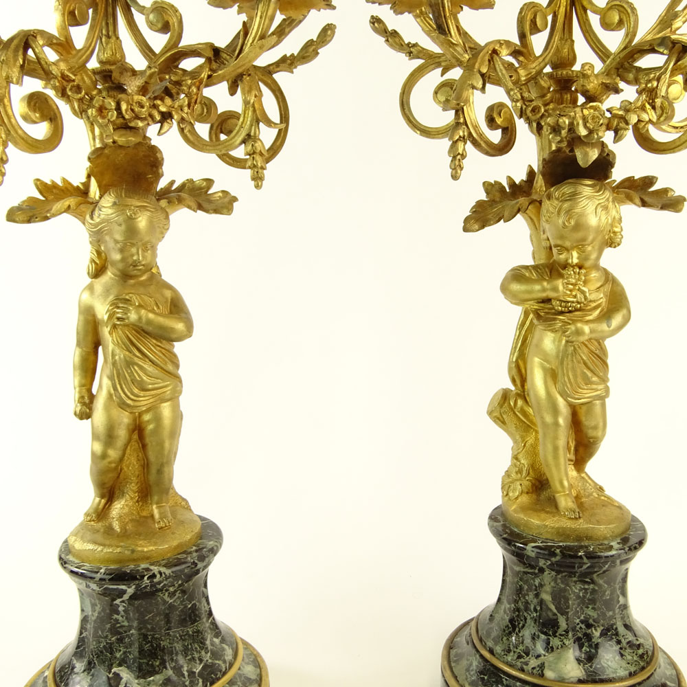 Early 20th Century Gilt Metal and Serpentine Marble Five Light Candelabra. Unsigned.