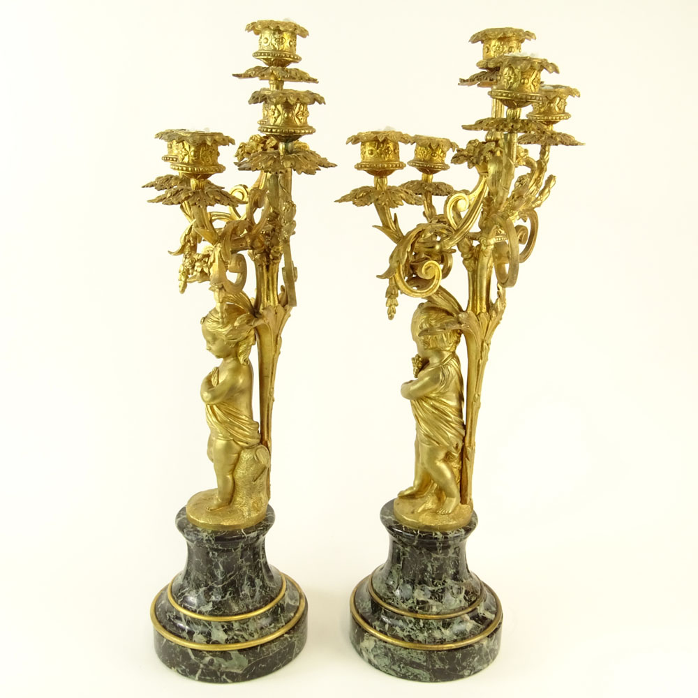 Early 20th Century Gilt Metal and Serpentine Marble Five Light Candelabra. Unsigned. Good condition. One arm broken has been repaired. Measure 23" H, 12-1/2 " W. Shipping $185.00 (estimate $550-$850)
