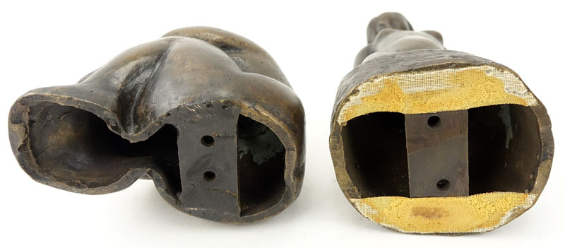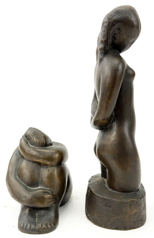 Two (2) Israeli School Mid Century Modern Bronze Sculptures. Signed. Rubbing to patina on both figures. Largest measures 10-1/2" H, smallest measures 5" H. Shipping $72.00 (estimate $400-$600)