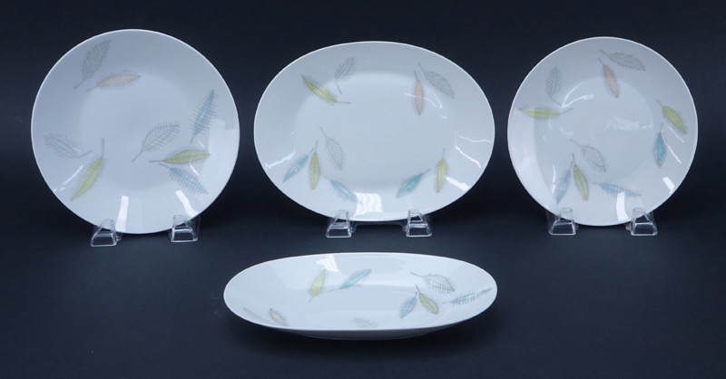Seventy Six (76) Pc Rosenthal - Continental "Bunte Blatter" Porcelain Dinner Service. Includes: 6 dinner plates 9-3/4" Dia, 8 luncheon plates, 8 salad plates, 5 bread and butter plates, 7 coupe soup bowls, 11 fruit/desert bowls, 10 footed cream soups bow