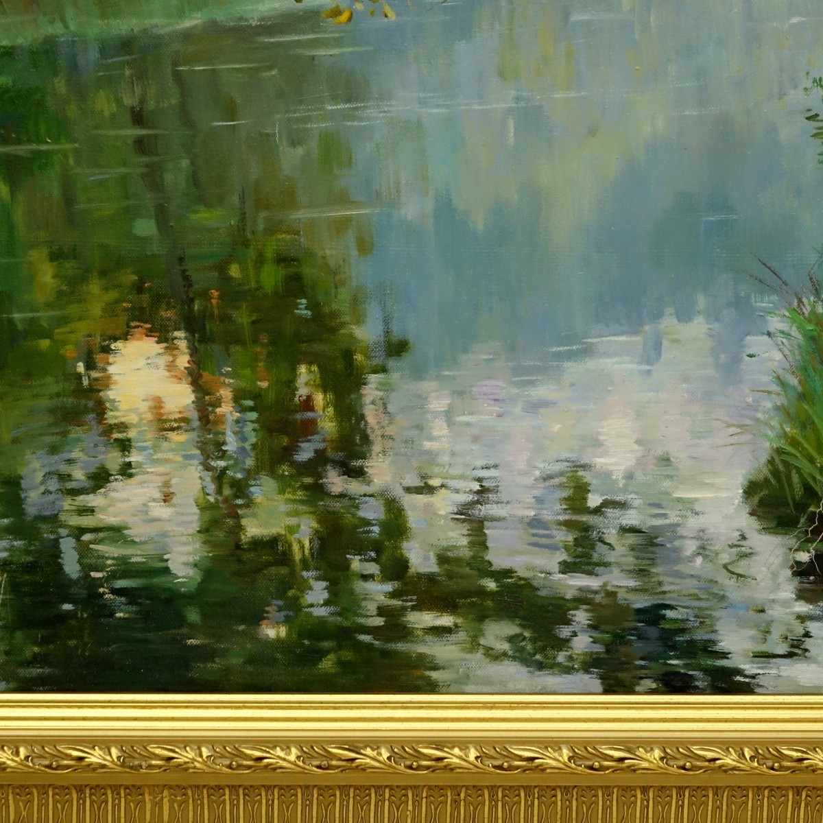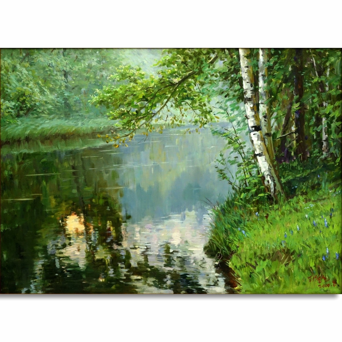 20th Century Chinese School Oil On Canvas, River Scene, Signed Lower Right. Inscribed En Verso. Measures 21" H X 28-3/4" W, Frame Measures 26-3/4" H X 34-1/2" W. Domestic Shipping: 145.00