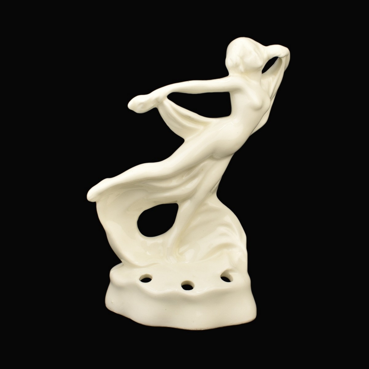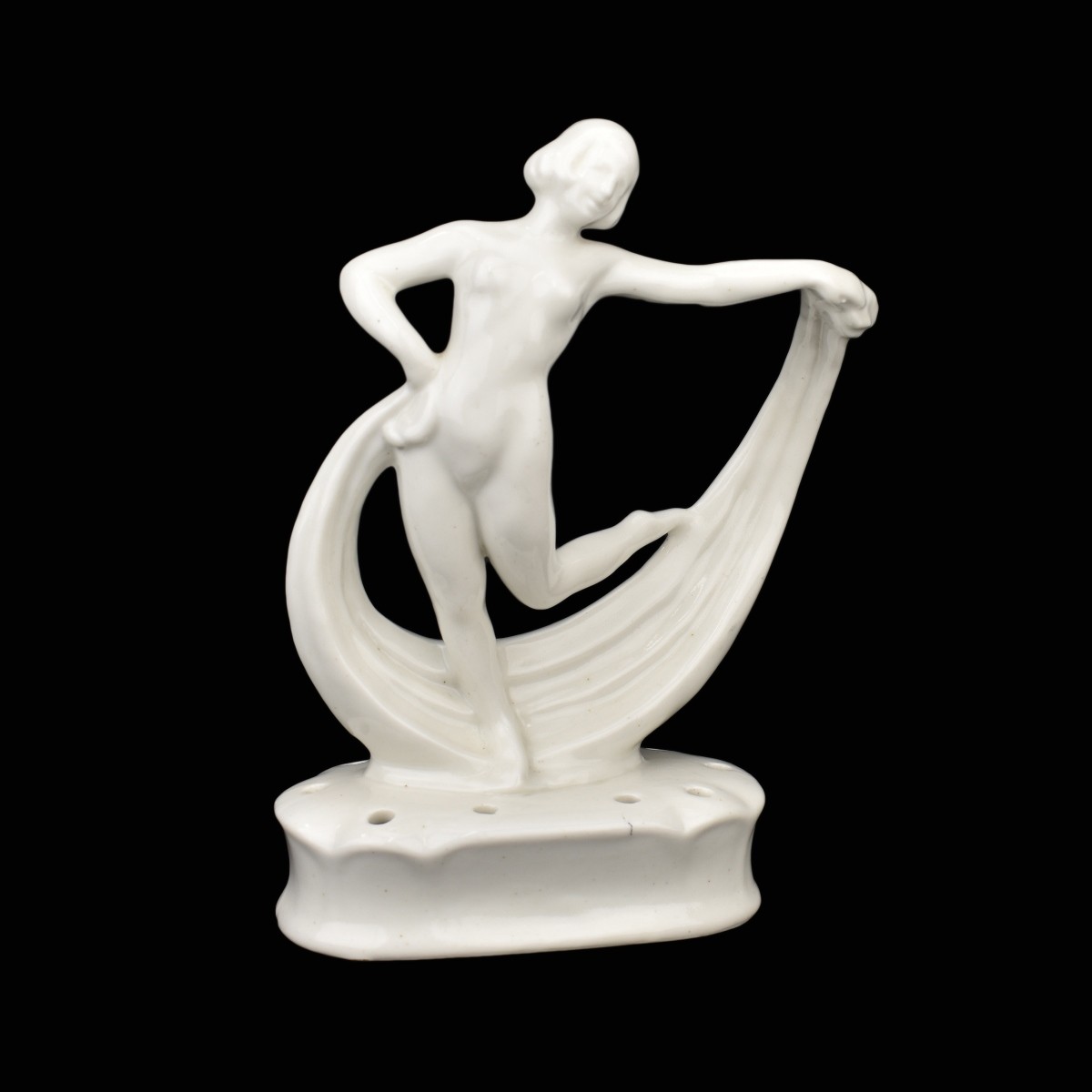 Five (5) Art Deco Porcelain & Pottery Flower Frogs. Includes: 1 Weller, 2 signed Germany, 2 unsigned. Tallest measures 10" H. Domestic Shipping: $95.00 Min Est. $100.00 Max Est. $150.00 Condition: Good