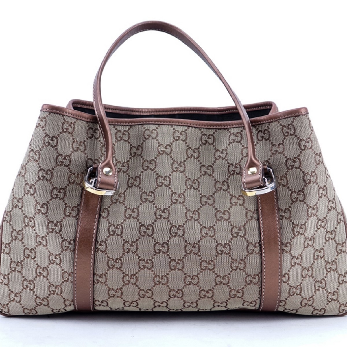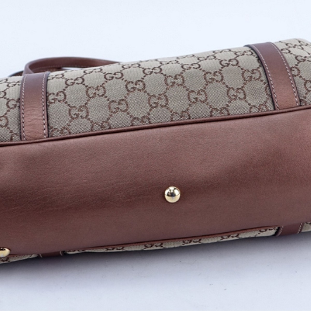Gucci Beige/Metallic Brown Canvas Twins PM Tote