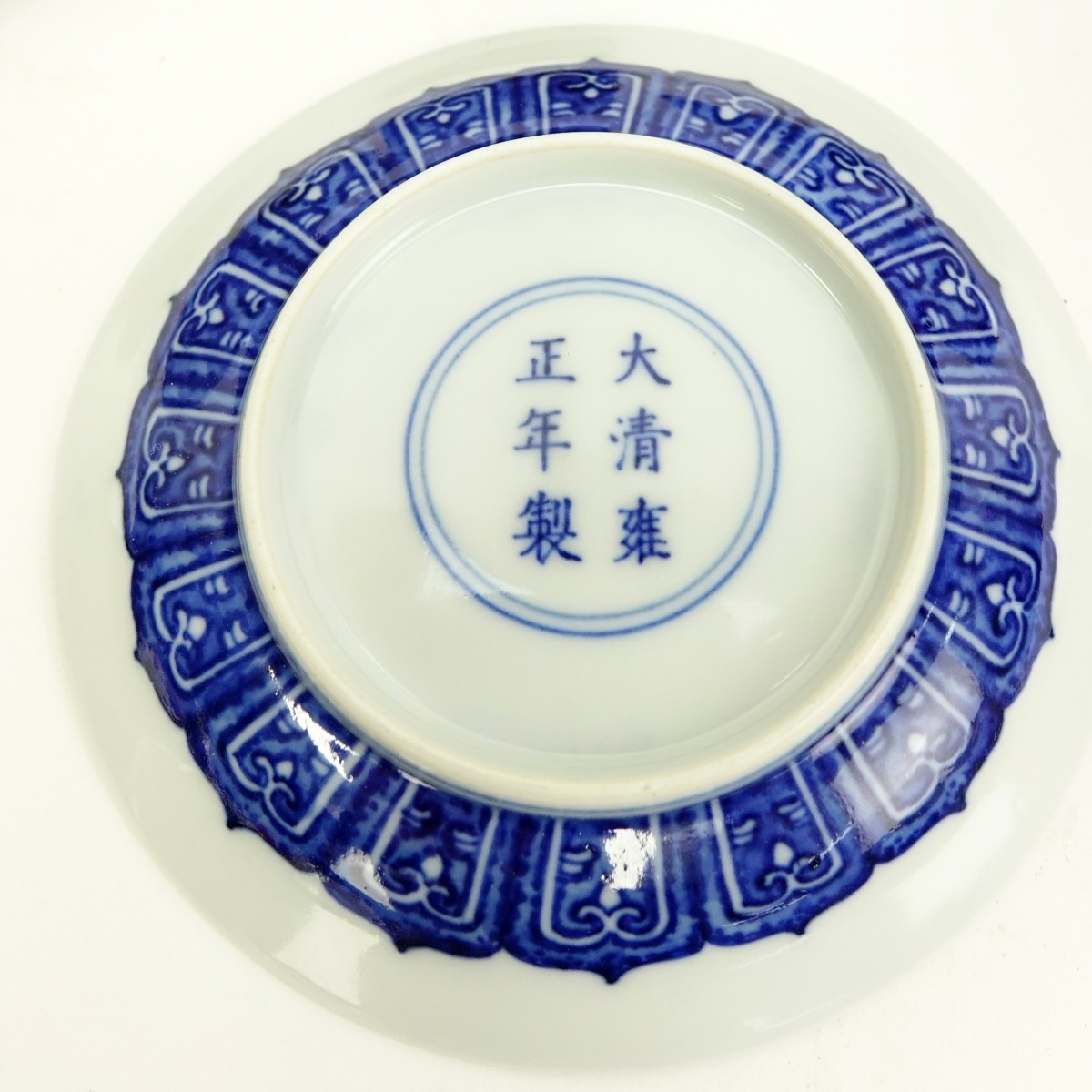 Grouping of Four (4) Chinese Tabletop Items. Includes: glazed clay wine pot, Yixing style teapot, carved wood figure, and Kangxi style blue and white dish. teapots and dish are signed. Largest teapot measures 5-5/8" H x 6-1/2" W, figure measures 5-7/8" H. Domestic Shipping: $76.00