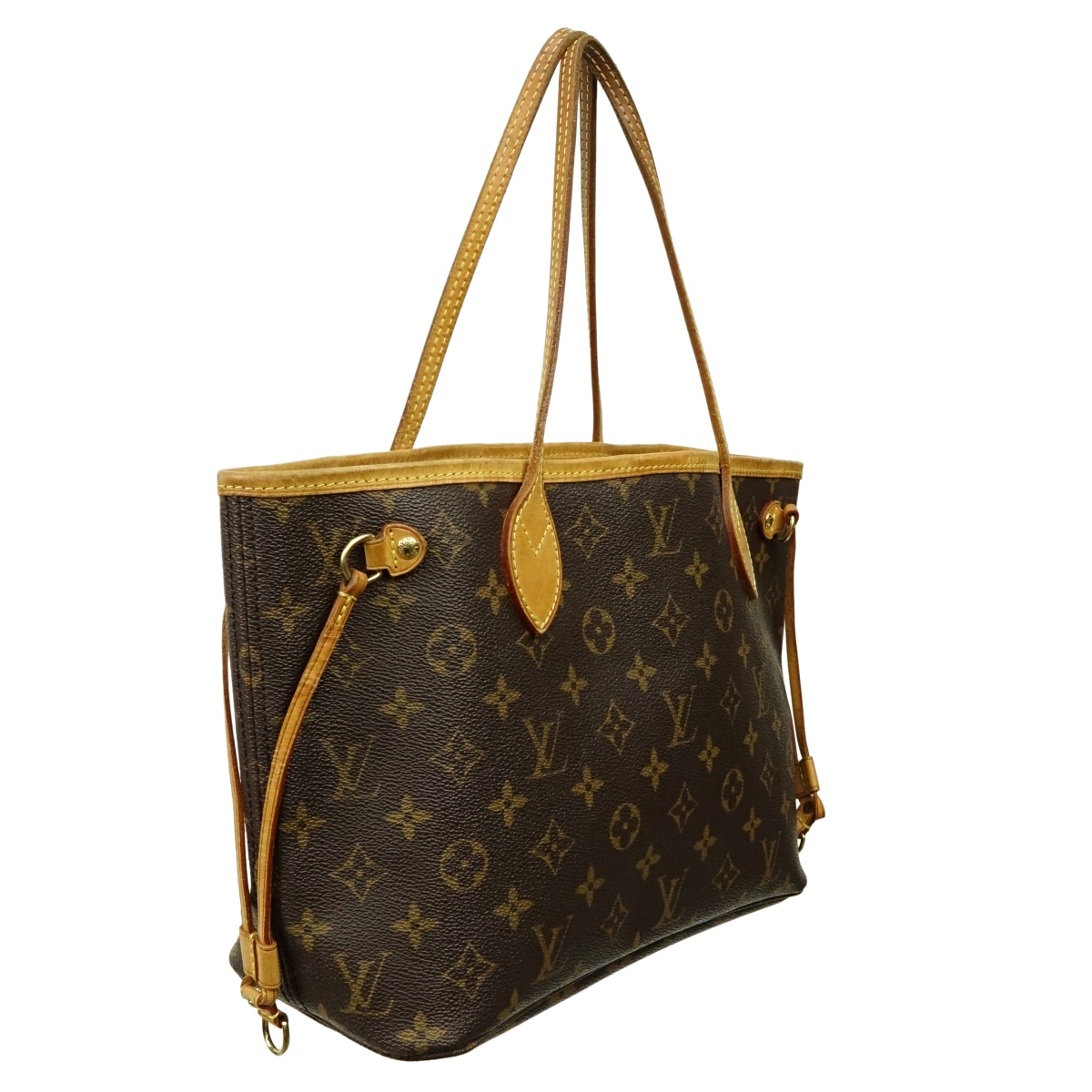 Louis Vuitton Brown Monogram Canvas Neverful PM. Golden brass hardware, signature lining with zippered pocket. Vachetta handles. Labeled appropriately. Serial #VI3087. Measures 14" x 8-1/4" x 5". Condition: Pre-owned condition with wear and toning to vachetta. Domestic Shipping: $56.00 Min Est. $700.00 Max Est. $800.00
