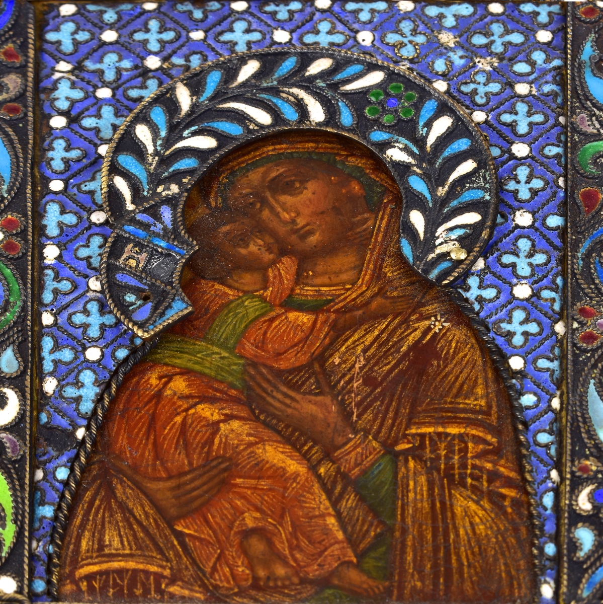 Antique Russian Silver and Enamel Icon