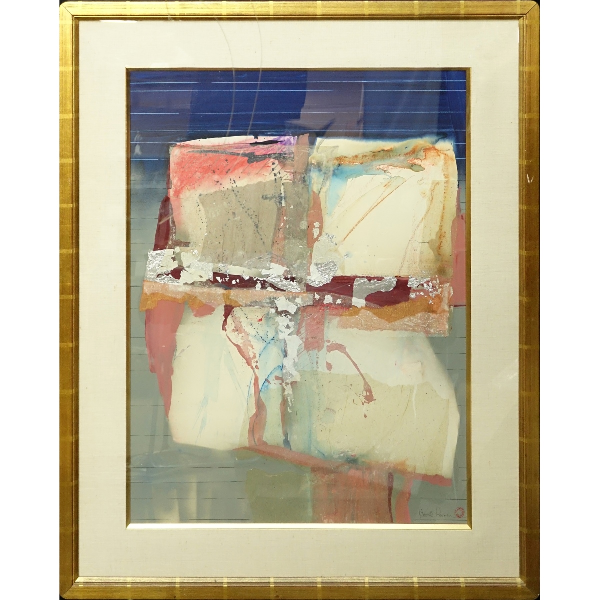 Harold E. Larsen (AMERICAN, 1935), Mixed Media on Paper, Abstract. Signed lower right. Measures 38" H, 28" W; frame measures 50-1/4"H, 40" W. Condition: Good condition. Domestic Shipping: Third party Min Est. $100.00 Max Est. $200.00