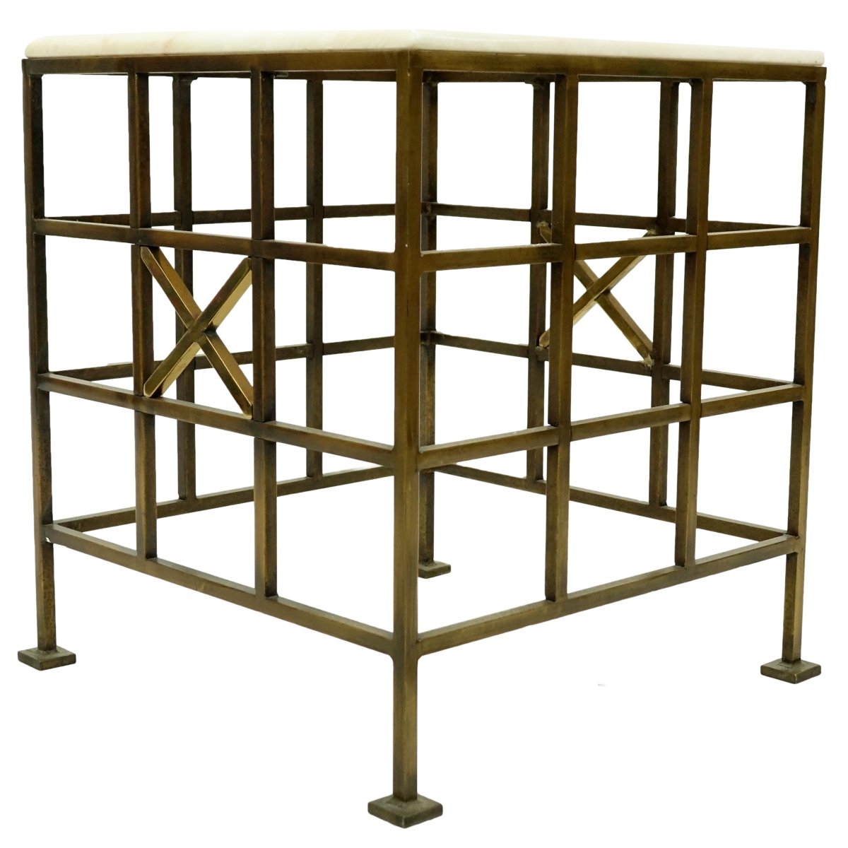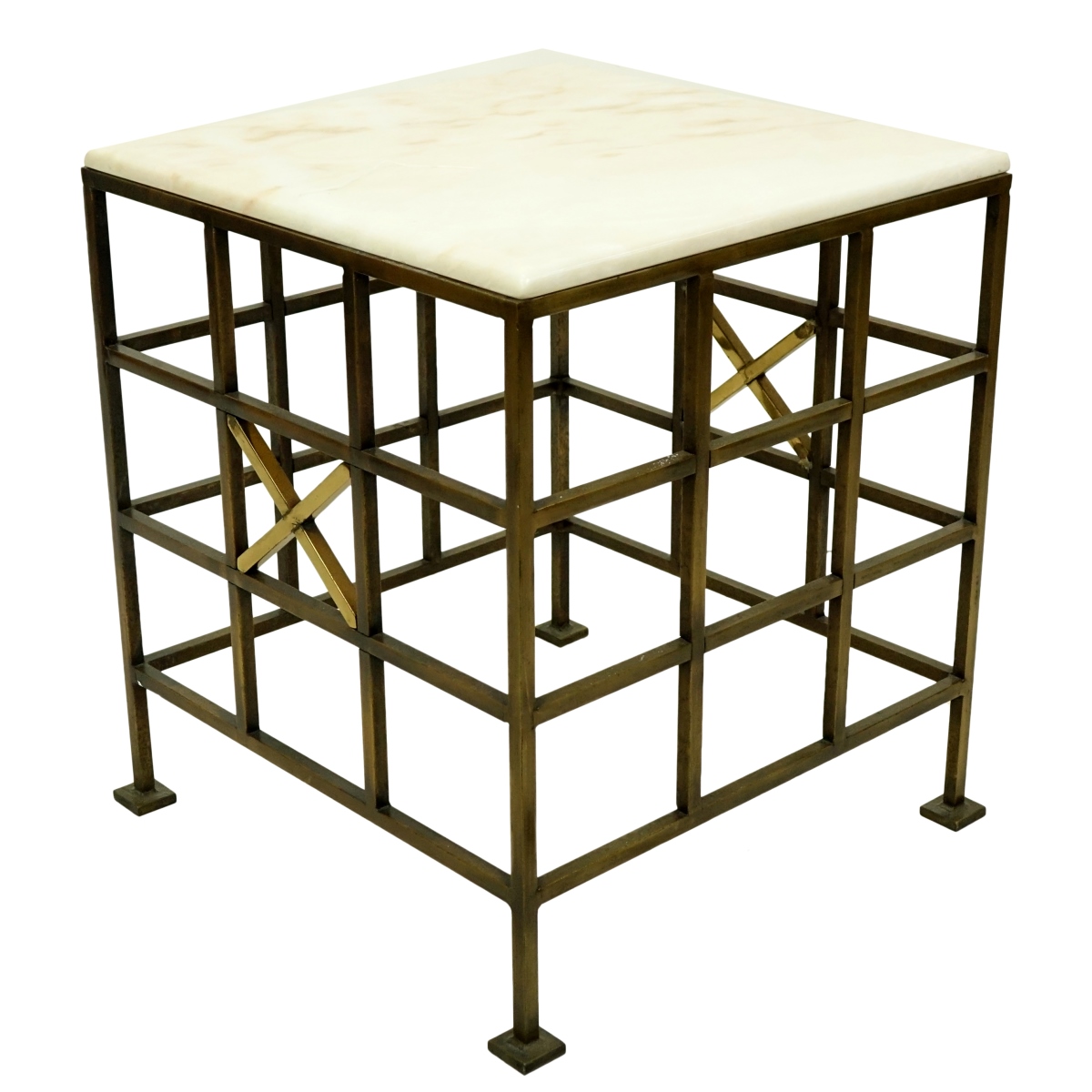 Mid 20th Century Modern Bronze and Marble Top Side Table. Measures 21-1/2" H x 18-3/4" W x 18-3/4" D. Condition: Rubbing otherwise good condition Domestic Shipping: Third party Min Est. $200.00 Max Est. $300.00