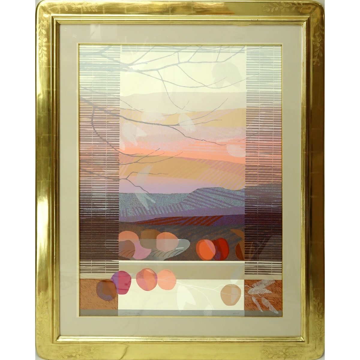 Large Original Lithograph, Abstract Scene, Signed and Numbered 78/325 on Lower Margin. Sight measures 37-1/2" H x 29" W, frame measures 50-1/2" H x 41-1/2" W. Condition: Good condition Domestic Shipping: Third party Min Est. $100.00 Max Est. $150.00