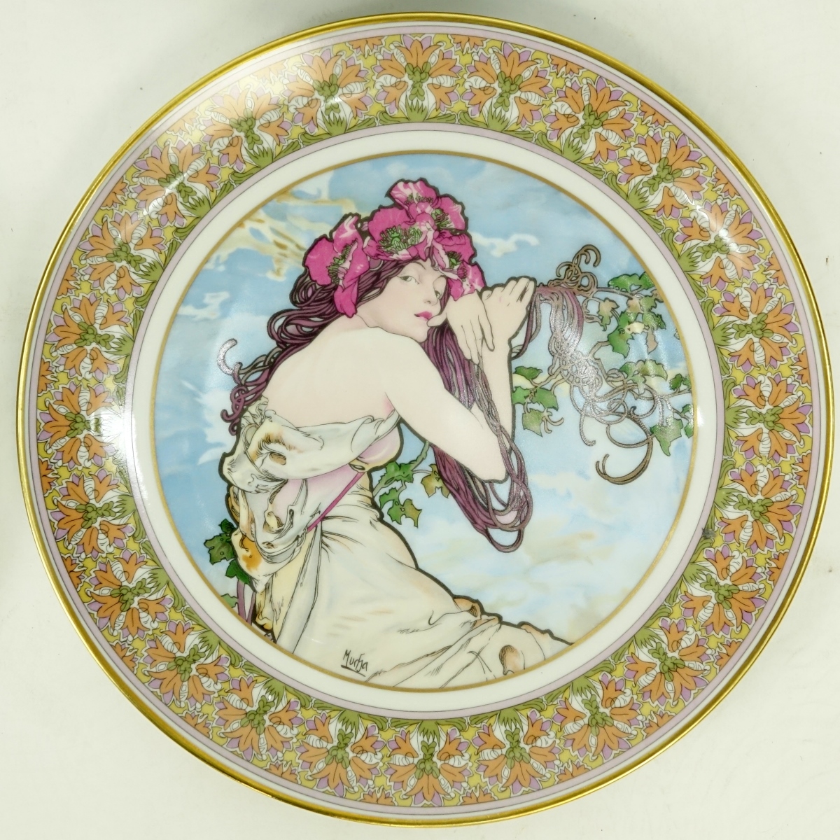 Set of Four (4) Hutschenreuther Porcelain Plates After: Alphonse Mucha (1860 - 1939). Each set in original box. Each plate is number, all but one includes a COA. Plate measures 8-3/4" dia., box measures 10" squared. Condition: Good condition Domestic Shipping: $72.00 Min Est. $50.00 Max Est. $100.00