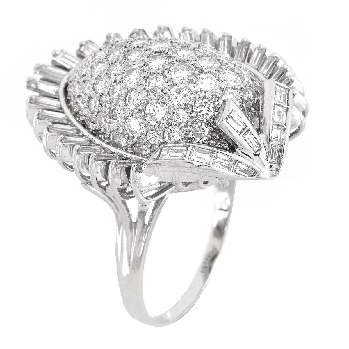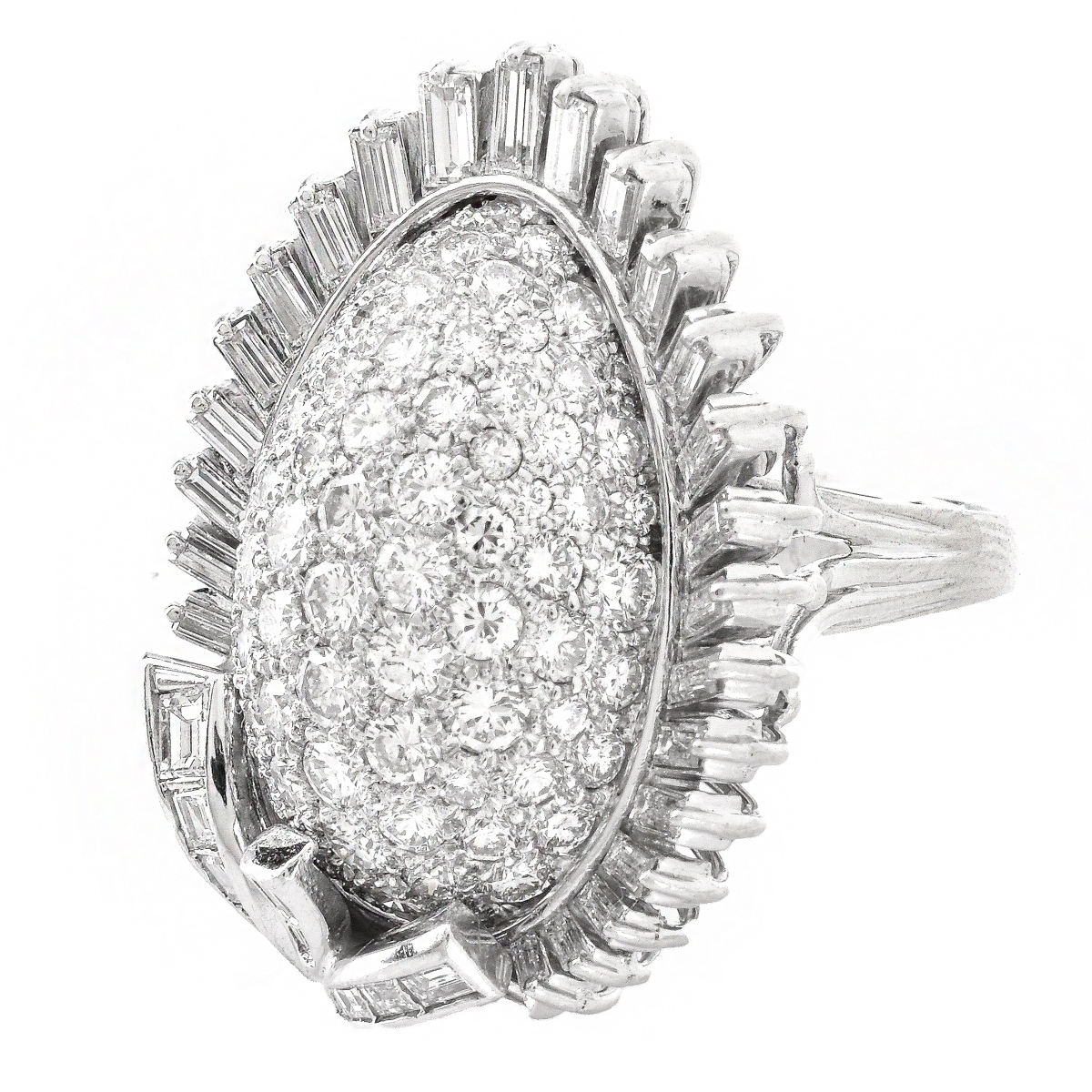 Vintage Approx. 4.0 Carat Round Brilliant and Baguette Cut Diamond and 14 Karat White Gold Ring. Diamonds G-H color, VS1 clarity. Unsigned. Ring size 10. Approx. weight: 14.0 grams. Condition: Very good condition. Domestic Shipping: $28.00 Min Est. $3000.00 Max Est. $4000.00