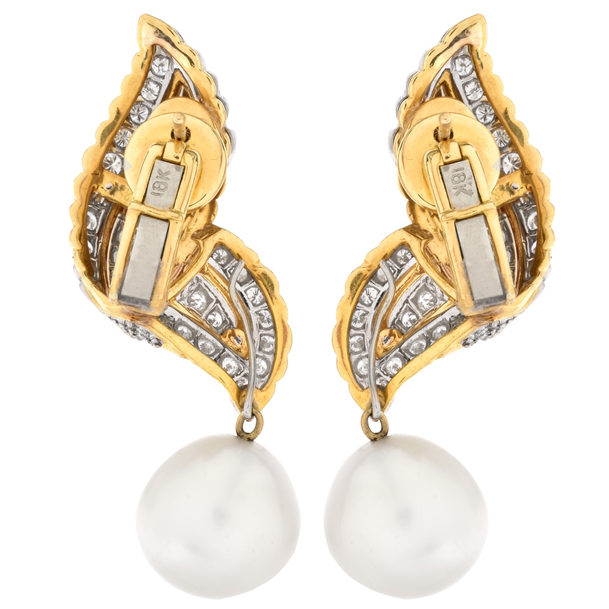 Diamond, Pearl and 18K Gold Earrings