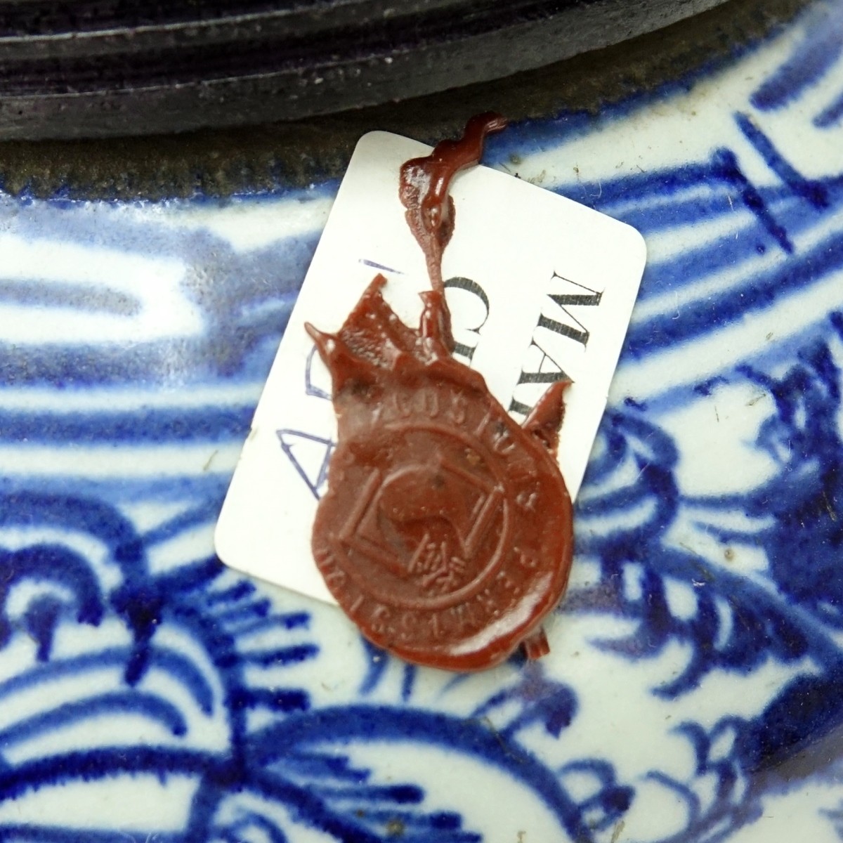 Two (2) Antique Chinese Porcelain Blue & White Ginger Jars. Decorated with double happiness and lotus design. With associated lids. Unsigned. Bears export stamps. Measures 7-3/4" H and 9" H. Condition: Good condition with typical wear from age. Domestic Shipping: $105.00 Min Est. $200.00 Max Est. $300.00