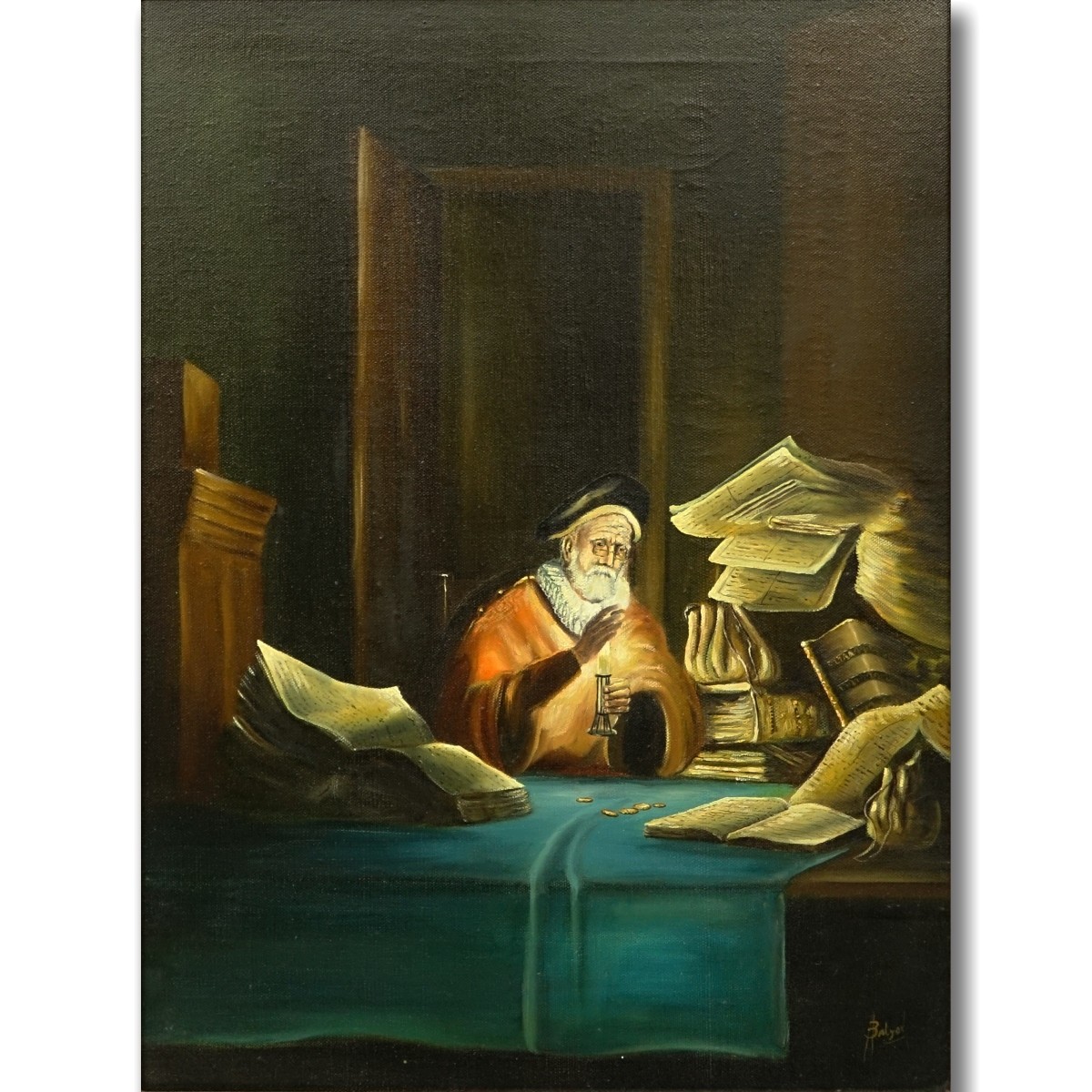 Andre Balyon, Dutch/American (born 1951) Oil on Canvas, Interior Scene with Elderly Man, Signed Lower Right. Measures 20" H x 15" W. frame measures 25-3/8" H x 20-1/4" W. Condition: Good condition Domestic Shipping: Third party Min Est. $500.00 Max Est. $700.00