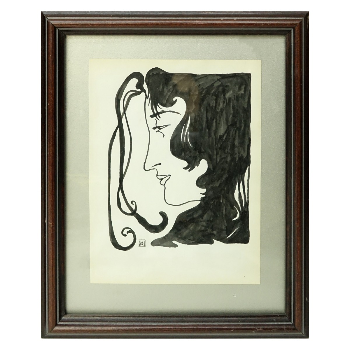 Attributed to: Kolomann Moser, Austrian (1868-1918) Ink on paper "Portrait Of A Girl". Signed with monogram. Measures 11" x 8-1/4", frame measures 16" x 13". Condition: Overall good condition with toning. Domestic Shipping: $85.00 Min Est. $300.00 Max Est. $500.00