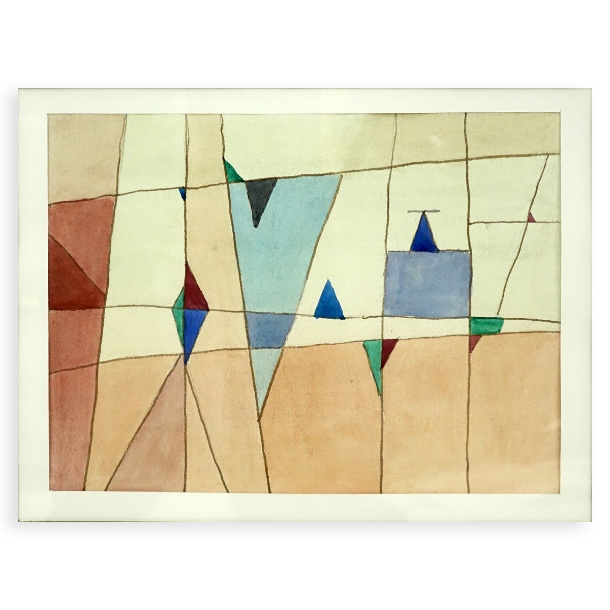 Attributed to: Jerzy Nowosielski, Polish (1923-2011) Watercolor on paper "Abstrakcja". Signed and titled en verso. Measures 9-1/4" x 12-1/4" (sight), frame measures 17-1/4" x 20-3/4". Condition: Good condition. Light buckling. Domestic Shipping: $155.00 Min Est. $500.00 Max Est. $700.00