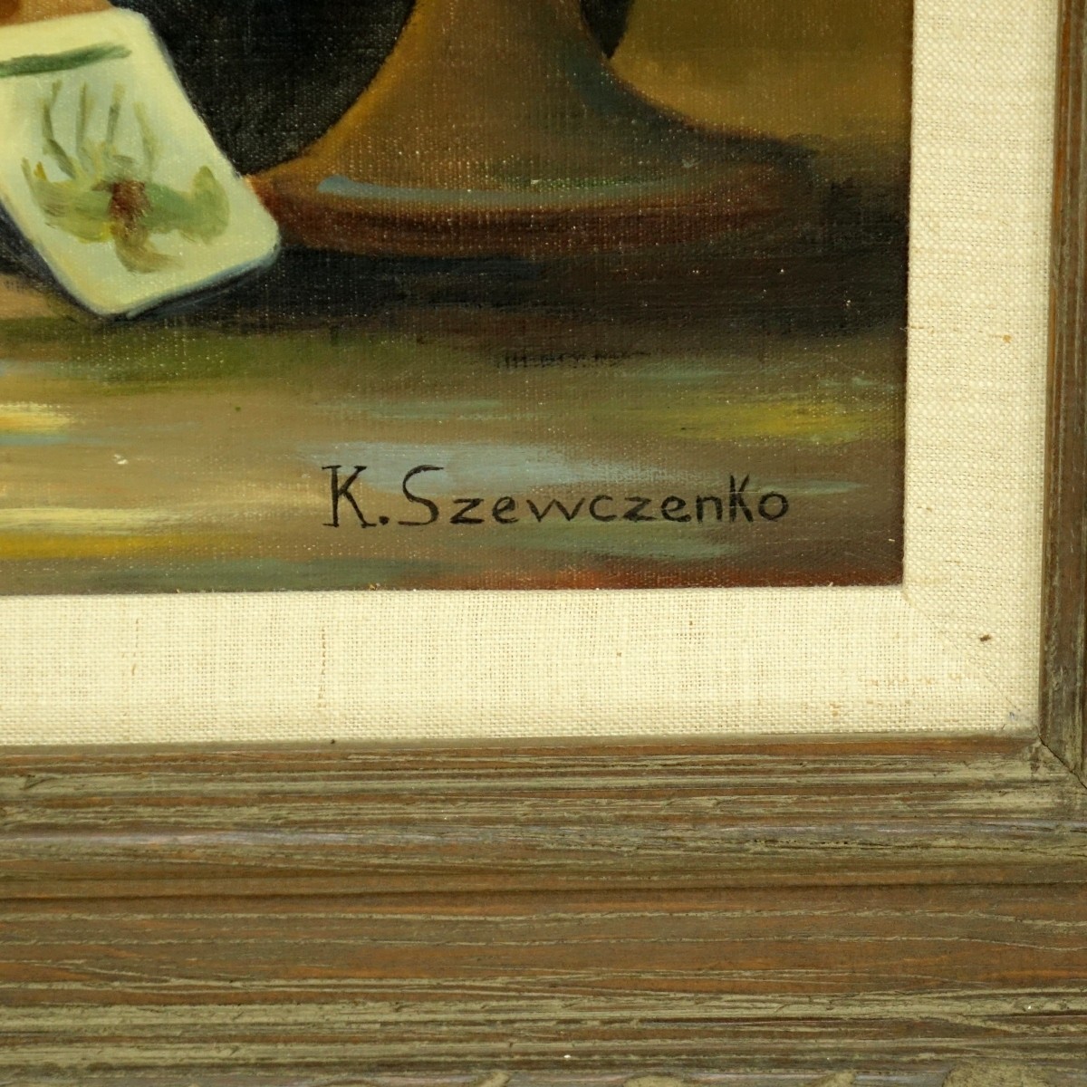 Konstantin Szewczenko, Polish (1915-1991) Oil on canvas "Man With Pipe Playing Cards". Signed lower right. Measures 20" x 28", frame measures 28-1/2" x 36-1/2" Condition: Good condition. Domestic Shipping: Third party Min Est. $300.00 Max Est. $500.00