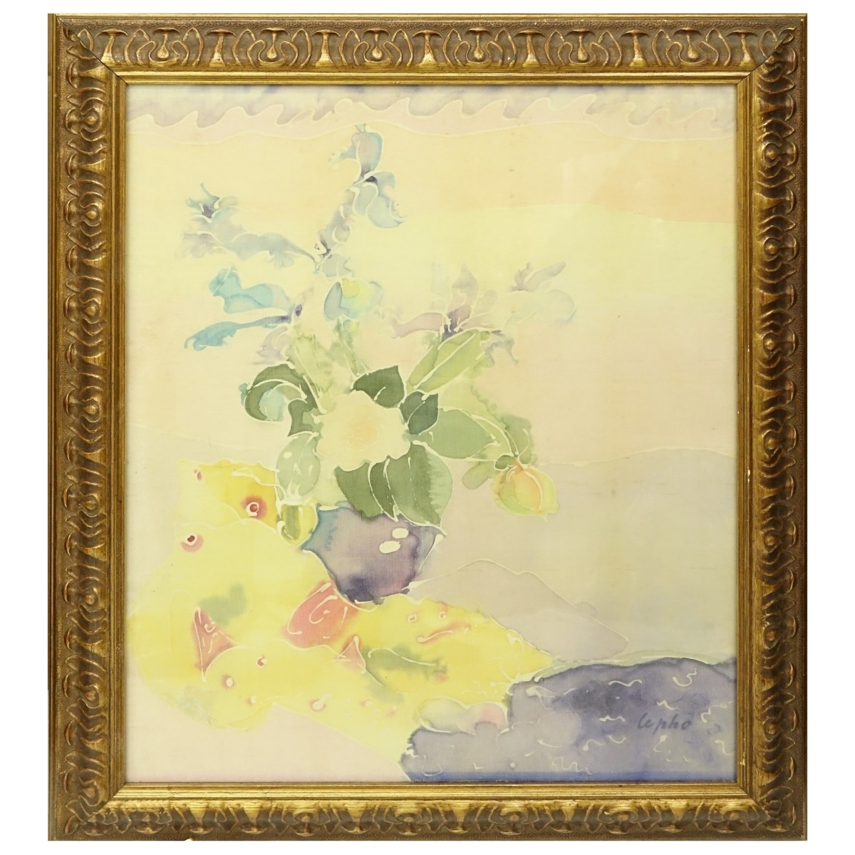 Watercolor on Silk Signed Le Pho, Still Life with Flowers. Measures 17-1/2" H, 13-5/8" W (sight); frame measures 21-1/2" H, 17-1/4" W. Condition: Possible fading. Domestic Shipping: $125.00 Min Est. $2000.00 Max Est. $3000.00