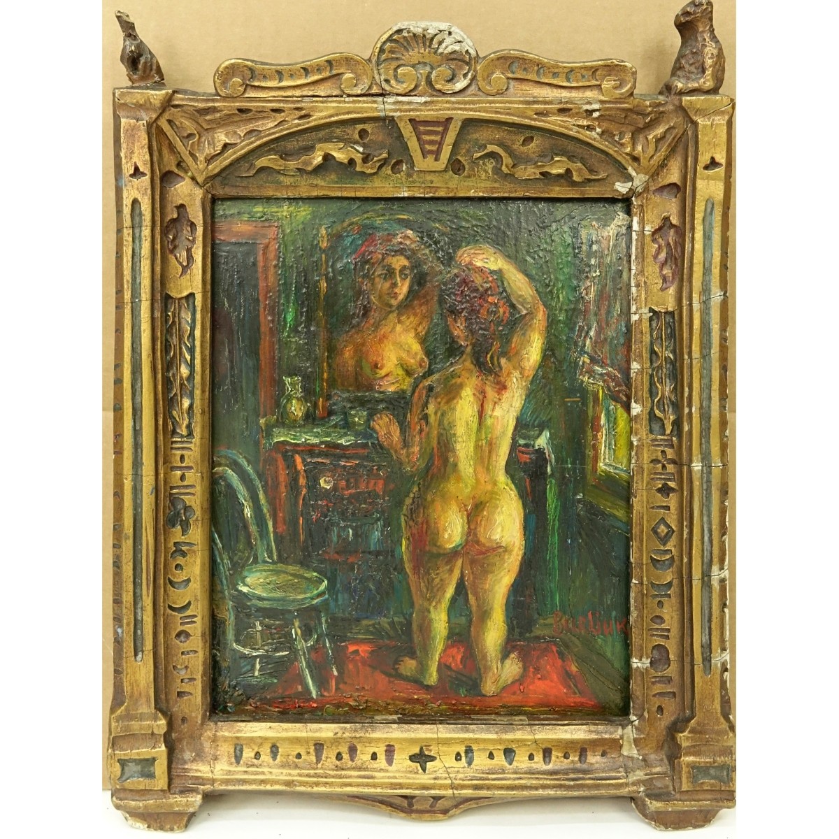 After: David Davidovich Burliuk (1882 - 1967) Oil on Board, Nude in Interior Scene, Signed Lower Right. Measures 11" H x 9" W, 16-1/2" H x 12-1/2" W. Condition: Conserved condition Domestic Shipping: $135.00 Min Est. $1000.00 Max Est. $2000.00