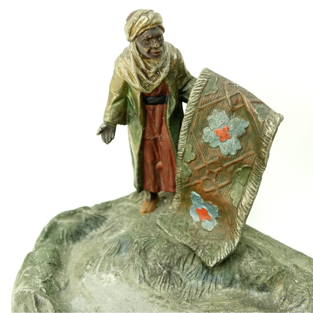 Grouping of Three (3) Antique Austrian Polychrome Orientalist Figural Sculptures. Two are spelter, one is bronze. Largest measures 4-3/8" H, smallest measures 3-7/8" H. Condition: Rubbing, wear, nicks Domestic Shipping: $62.00 Min Est. $100.00 Max Est. $150.00