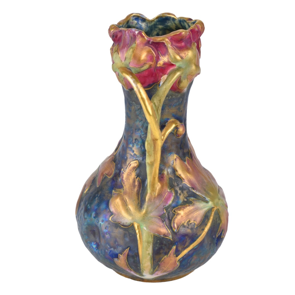 Amphora Art Nouveau Two Handled Poppy Vase. Impressed Amphora mark to base, numbered 3863/30. Measures 7-1/2" H. Condition: Good condition Domestic Shipping: $58.00 Min Est. $100.00 Max Est. $150.00