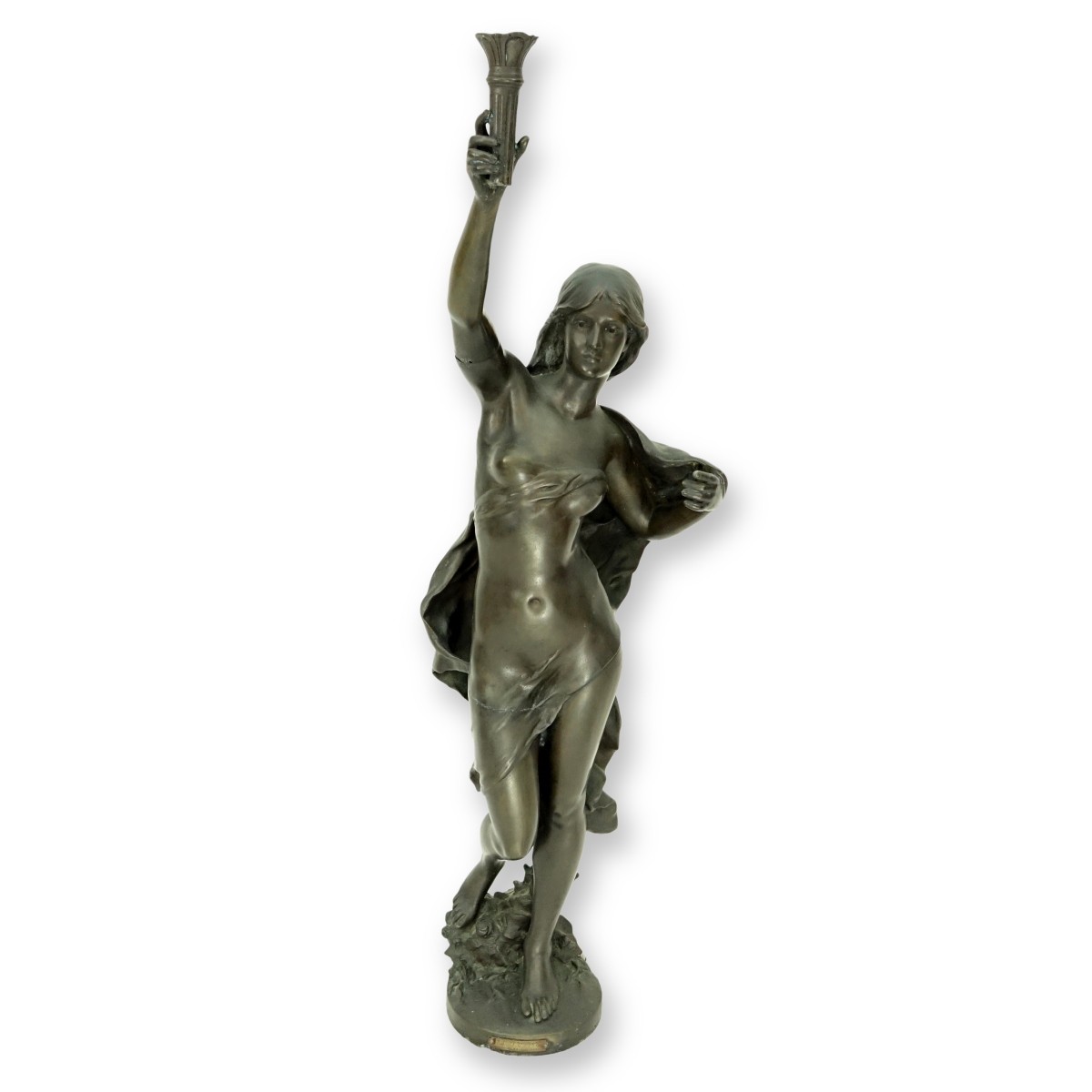After: Mathurin Moreau, French (1822 - 1912) Bronze Sculpture "La Verite" Name Tag Attached Lower.. Foundry mark en verso. Measures 41" H. Condition: Drilled as a lamp, restored, rubbing to surface Domestic Shipping: Third party Min Est. $100.00 Max Est. $200.00